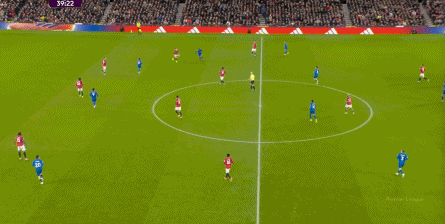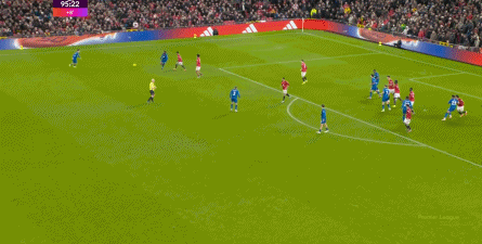 而且在这时,阿莫林也换上了梅努,换下了卡塞米罗,这一手能补充一些体能和到位率,就像这次防守,就做得不错: