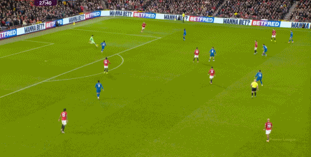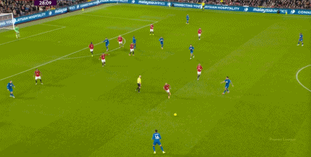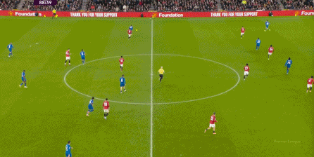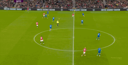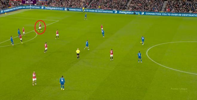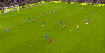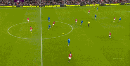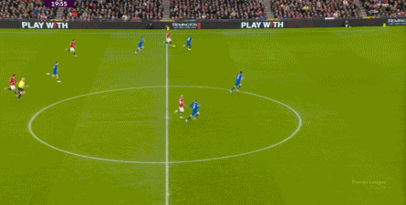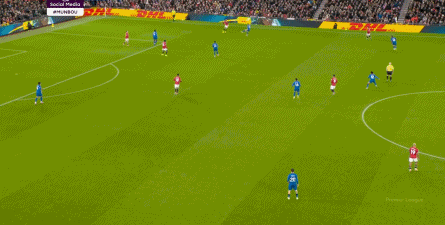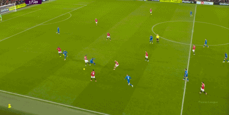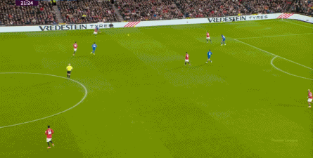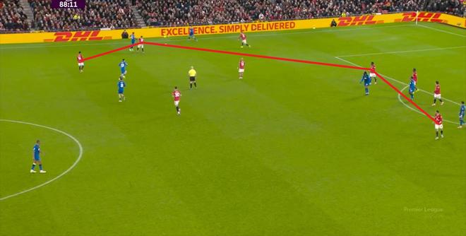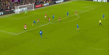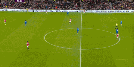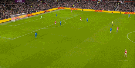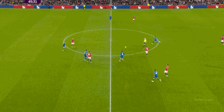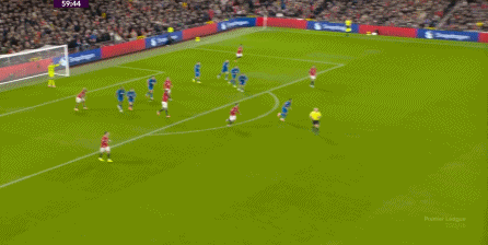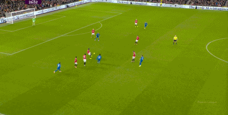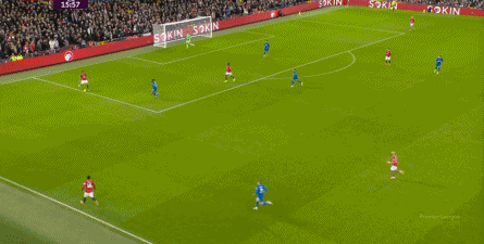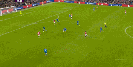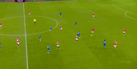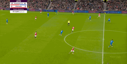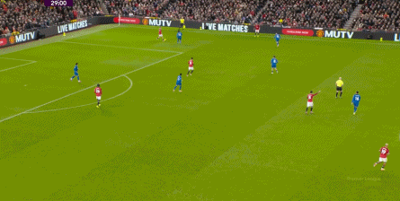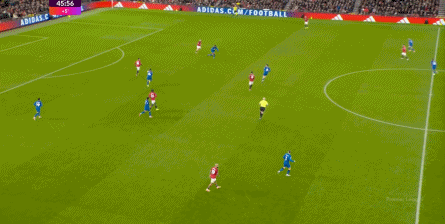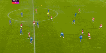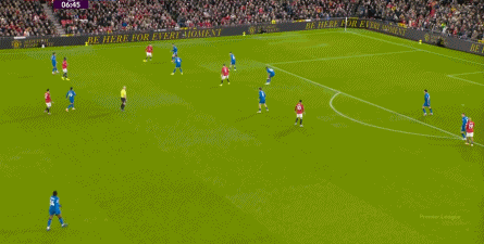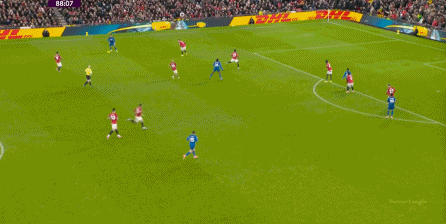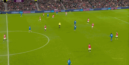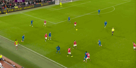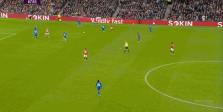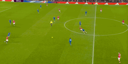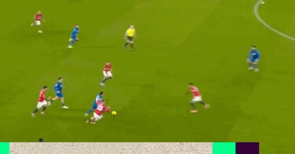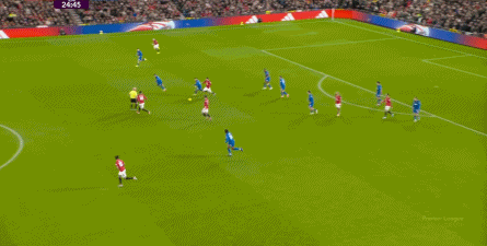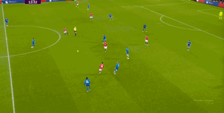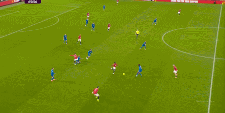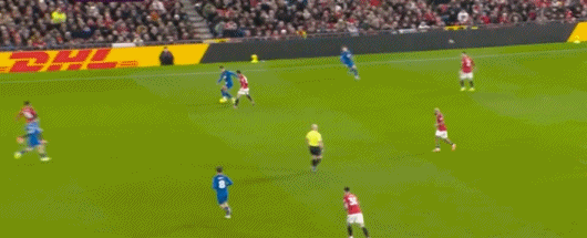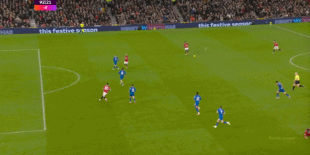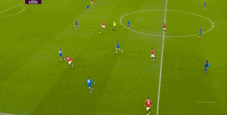 包括在这场比赛0-0的时候,曼联清晰地展现了自己用三后卫打四后卫的优势,也就是翼卫可以彻底将宽度拉开,于是在伯恩茅斯人盯人的防守体系的帮助下,曼联的进攻非常流畅,特征就是左右横移起来非常轻松和简单: