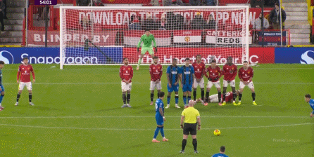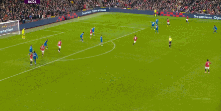 随后就是曼联的这次运转失误,布鲁诺掉球,卡塞米罗被对手直接趟过,迫使他在禁区前沿送出定位球: