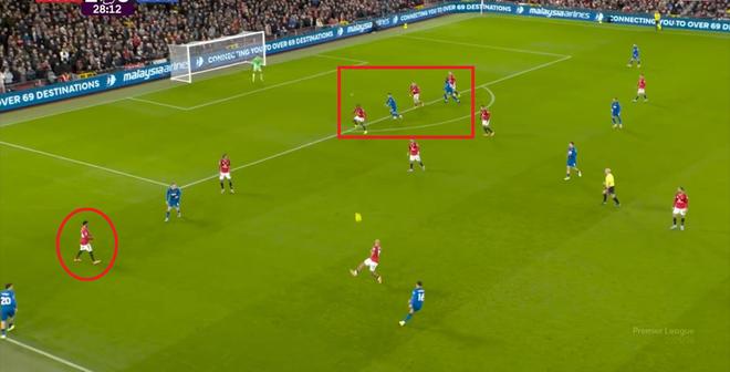 如此一来,卡塞米罗的落位选择就可以得到解释了,他很可能是以为达洛特会快速拉边,所以选择落位进来填补肋部的空间。