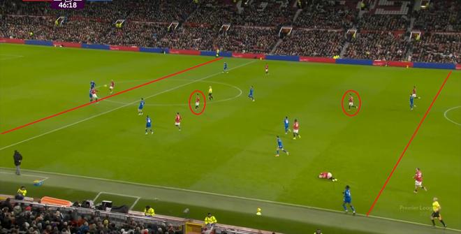 随后曼联在远端被伯恩茅斯绕出来,你就可以再次发现这个424有多么的空旷了: